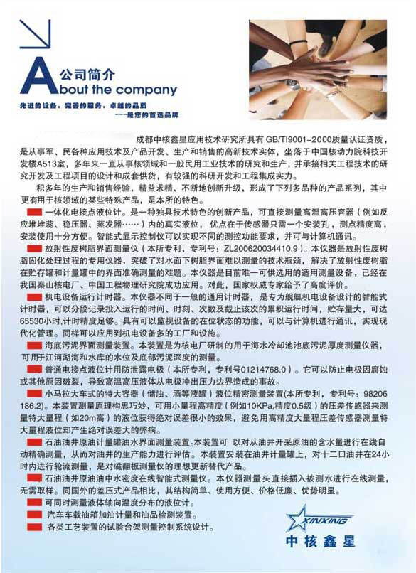 版权所有:成都中核鑫星应用技术研究所 公司地址:成都市一环路南三段28号中国核动力研究设计院科技开发楼A-513 电话(Tel):028-85903987 13808187721 13980058631 传真(Fax): 028-85903987